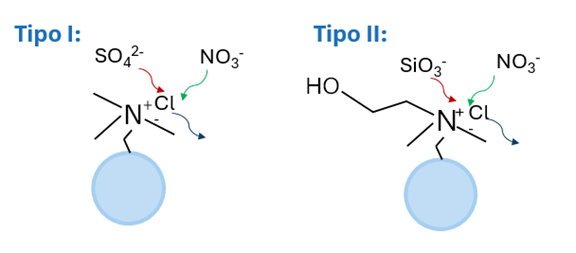 As resinas aniônicas fortes separam-se em dois tipos: